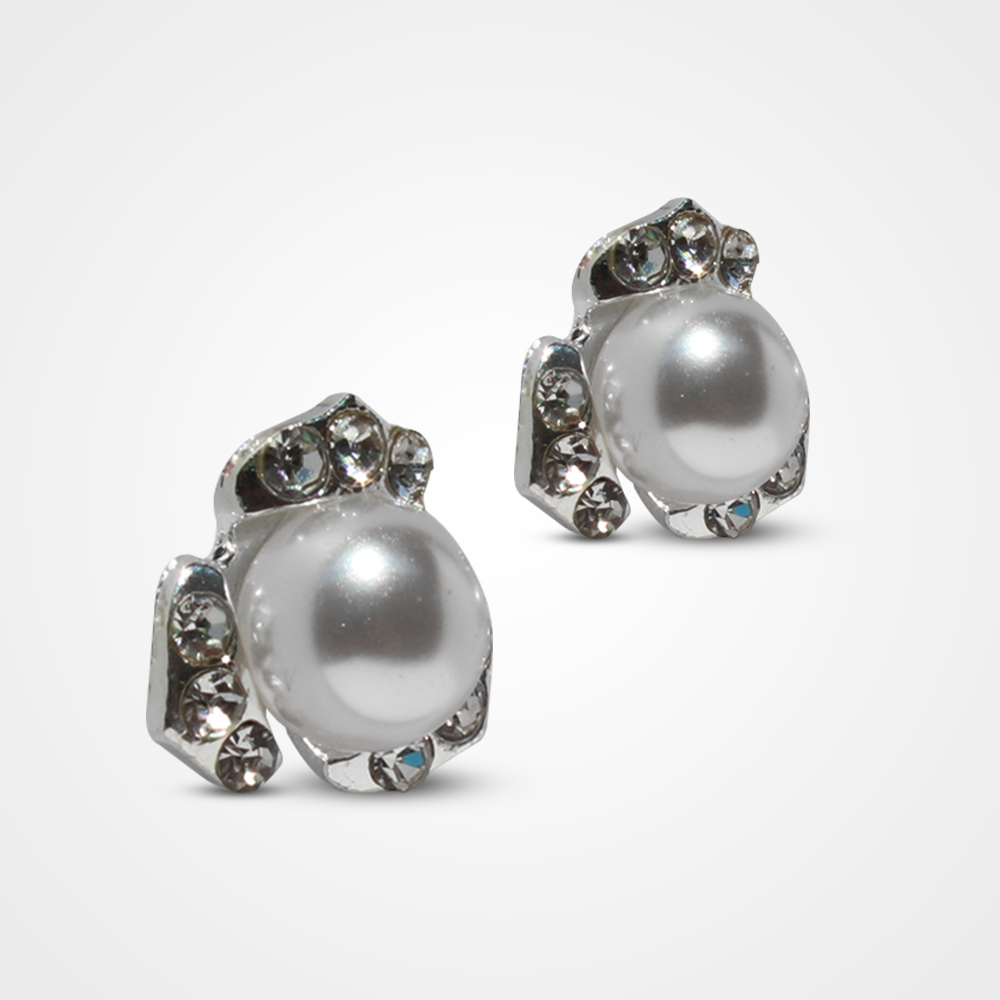 Un cercel care emană eleganță prin simplicitatea lui. În formă de romb, încrustat cu patru cristale transparentă, are pe partea inferioră o perlă albă.