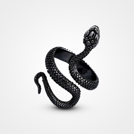 Inel de argint, cu două capete de șarpe, care se întălnesc.