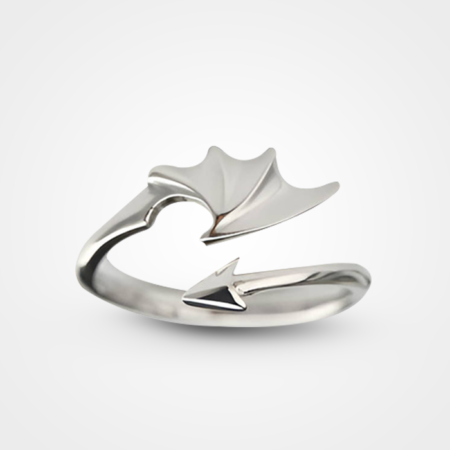 Inel cu motivul aripii de dragon și coadă ascuțită, argintiu, reglabil.