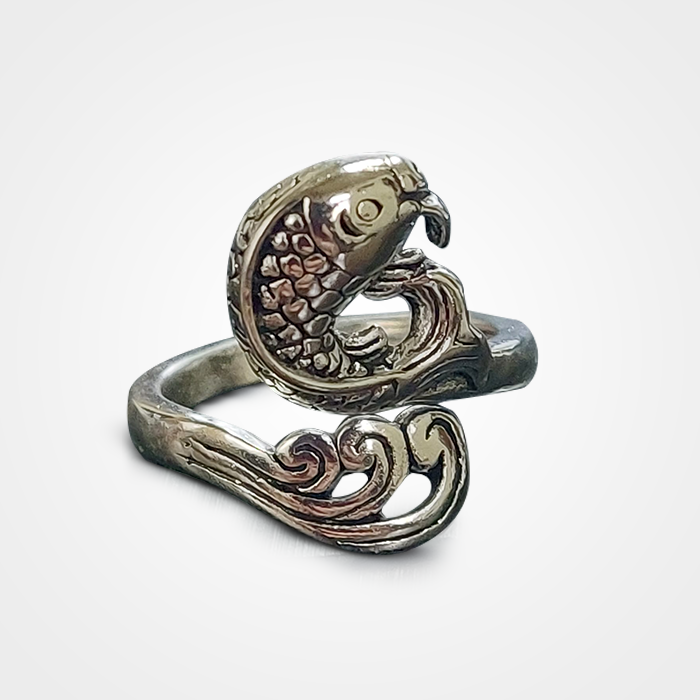 Inel argint, design vintage, in forma de pește. Ideal pentru pescarii înrăiți.
