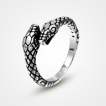 Acest inel spectaculos prezintă un design unic, cu un șarpe negru înfășurat în jurul degetului, creând iluzia că șarpele se mișcă într-un mod fascinant. Cu o textură detaliată și o finisare neagră, inelul emană o aură misterioasă și atrăgătoare.